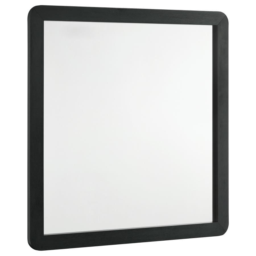 Reimagine your bedroom entirely with the sophistication of a modern bedroom set. It focuses on a chic upholstered bed that features a pair of padded panels with charcoal fabric that creates a soft, inviting presence that's perfect for lounging while maintaining a refined look. Storage pieces add ample space for organization. The dresser includes a mirror that lightens the look and provides reflectivity and a place for beauty rituals. A black finish is paired with old finish hardware, creating a touch of glam allure perfect for a sophisticated bedroom.