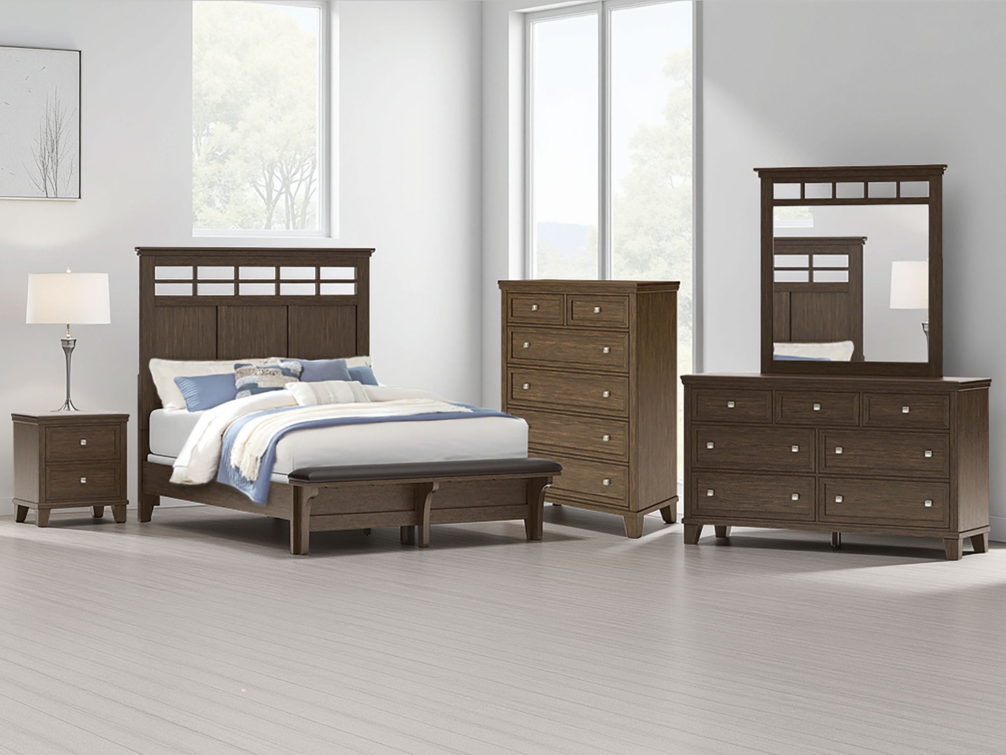 This panel bed is well-suited to everyday living with its expertly balanced approach to style and function. Take the stress out of decorating—a classic finish easily pairs with existing furniture pieces. Its timeless design stays in style as you update your space, while open detailing at the top of the headboard is a trendy touch. And its cushioned footboard bench provides seating for morning get-ready routines or late night chats. All that's left for you to do is to effortlessly enjoy the day-to-day comforts of home.