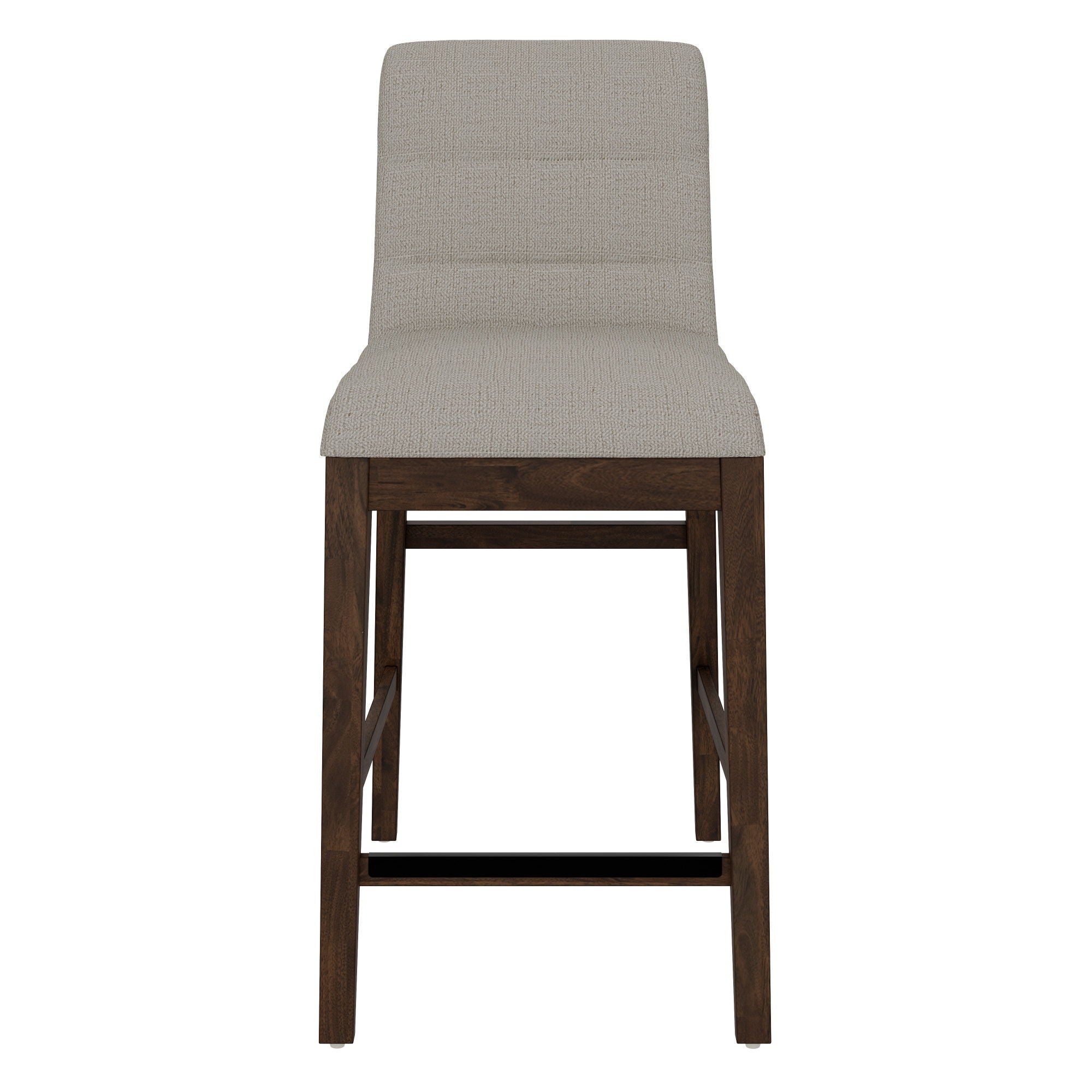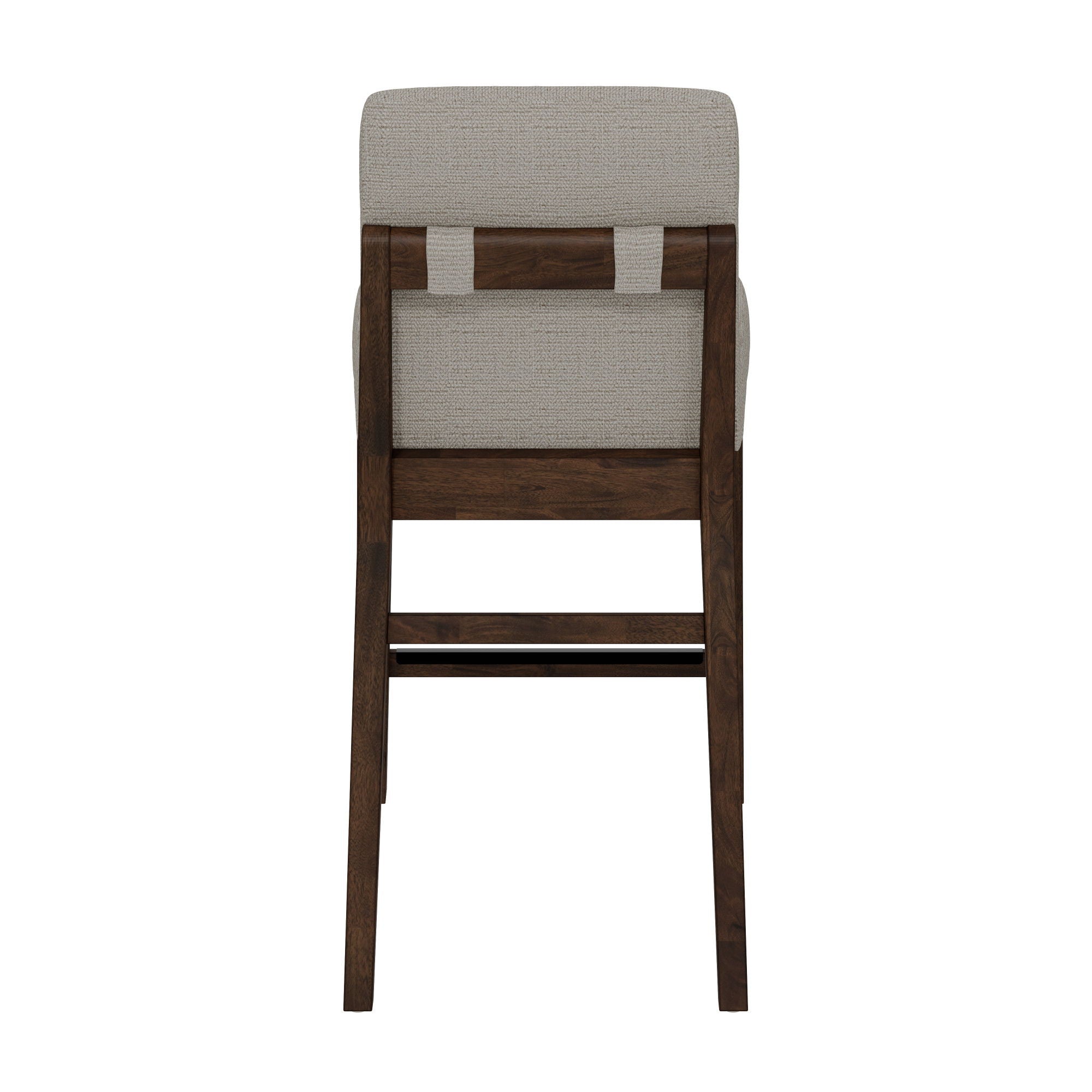 Sleek contemporary lines with intriguingly angled legs may catch your attention but the details of the Ronan collection will draw you in. Mango veneers applied over hardwood solids are polished off in a rich brown finish that flaunts the deep natural variations of the wood grain. Gently rounded edges pair with soft, textured fabric on the fully upholstered chairs and stools with tufting and exposed back frame details. In dining and gathering heights and a matching server, the Ronan collection proves that elevated and sophisticated can also be warmly inviting.