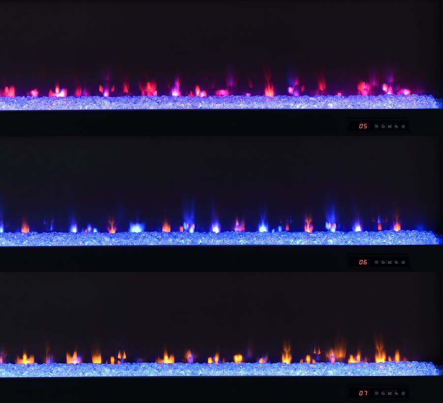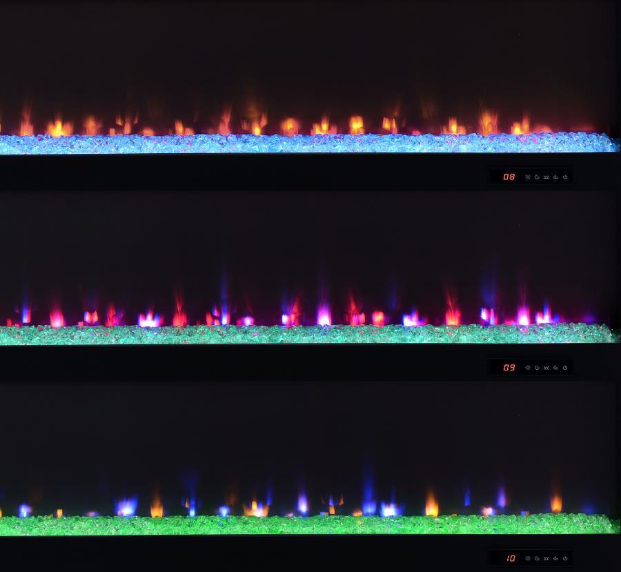 This sleek fireplace media console brings warmth and streamlined storage to contemporary living spaces. A wide electric firebox glows over crushed acrylic crystals, offering fifteen customizable flame colors operated by a wireless remote. Open side compartments with adjustable shelves store devices or décor, while rear cable management cutouts keep wires out of sight. Finished in classic black and crafted from engineered wood with a laminate veneer, it serves as a refined TV stand or entertainment center. Please note that this console does not include a heat function.