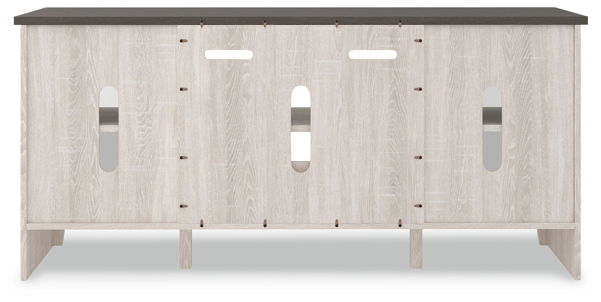 With its minimalist charm, this TV stand is right in tune with your relaxed approach to high style. Beautifully made to accommodate your media equipment, it’s well equipped with a flexible, open-concept design and cutouts for wire management that enhance the clean-lined aesthetic. The look is ideal for modern farmhouse and contemporary settings.