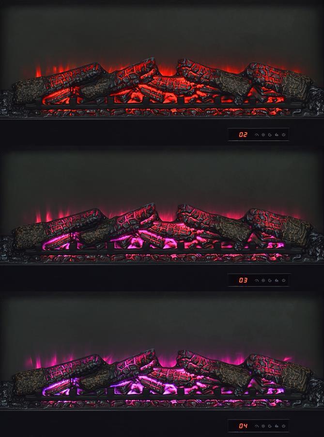 Rustic design meets modern warmth in this fireplace TV stand, featuring a realistic ember display and a convenient wireless remote. The dark pine finish and black metal accents frame a charming barn door aesthetic, with sliding doors that conceal adjustable shelving on each side. Thoughtfully designed for both function and style, this entertainment console includes cord management cutouts and supports TVs up to 80 inches with ease. Please note that there is no heat function included.