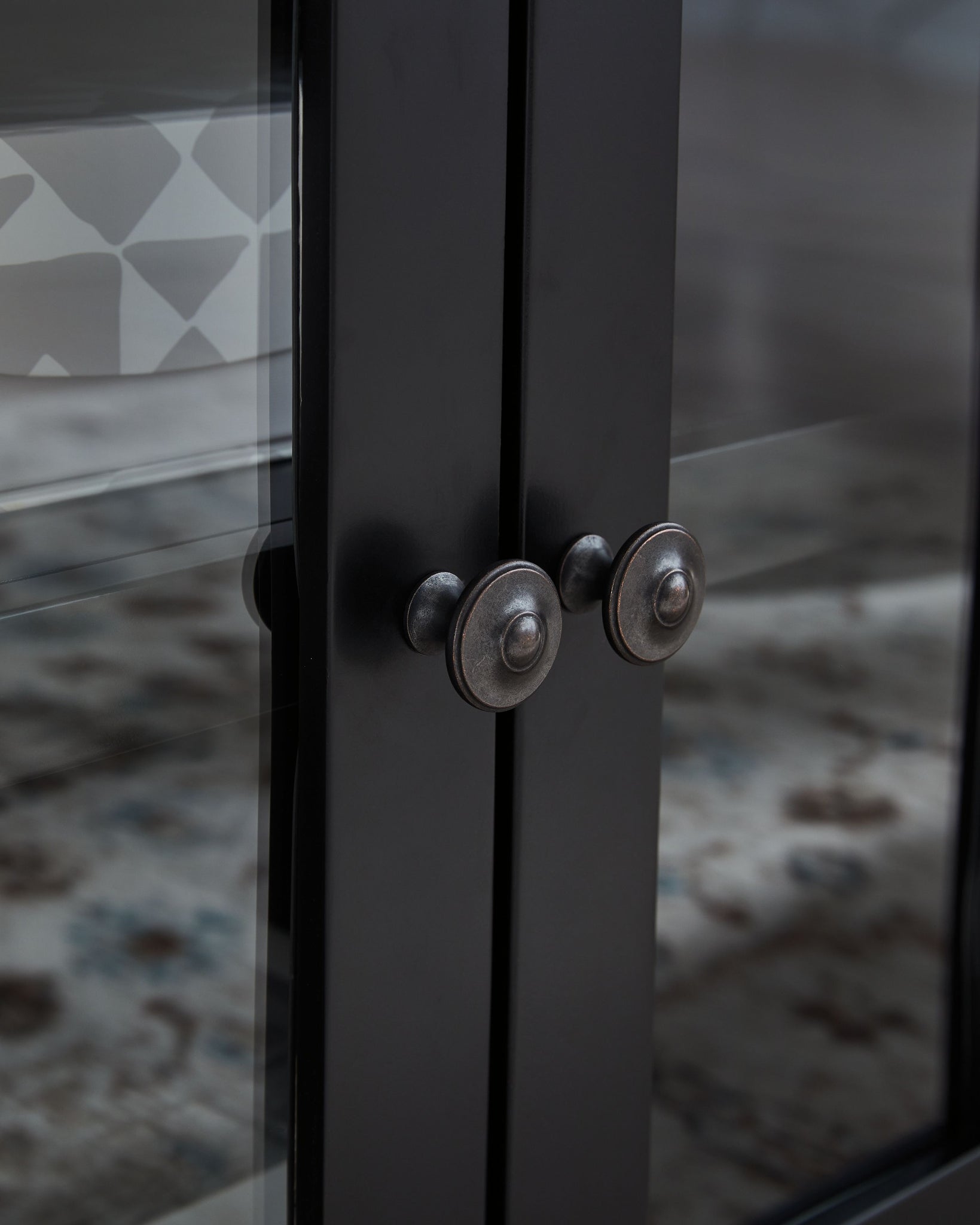 Raise the bar on modern farmhouse style with the Wildenauer TV stand. Its sturdy silhouette and casual good looks are accentuated with a two-tone finish, which pairs a warm satin black base with a contrasting butcher block veneer top. Glass door cabinets with adjustable shelves offer plenty of storage for media and electronics. And removing the center cabinet’s shelf allows room for the optional fireplace insert (sold separately), adding instant warmth and romance. Whether your style is vintage, country or eclectic, this TV stand adds a hearty element.