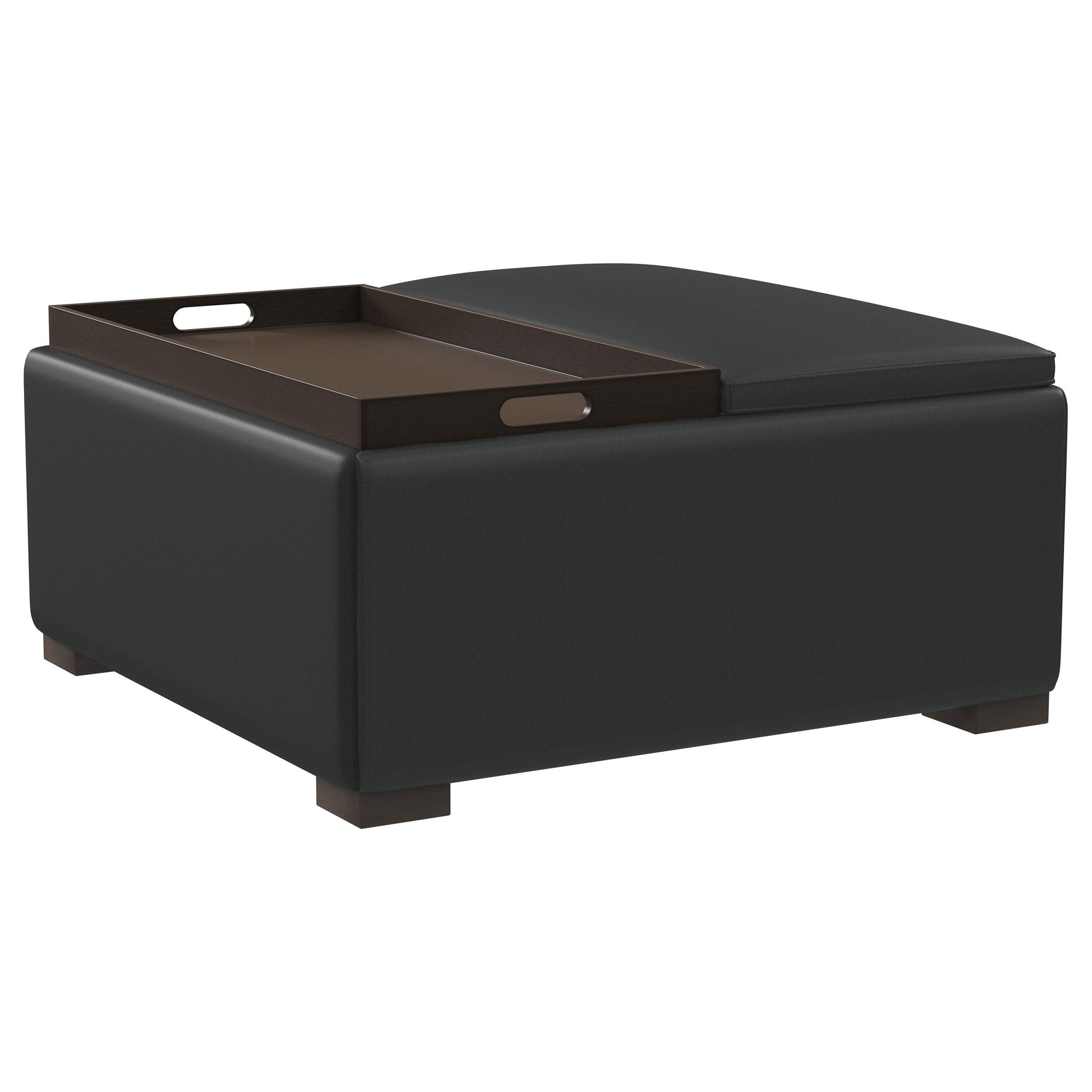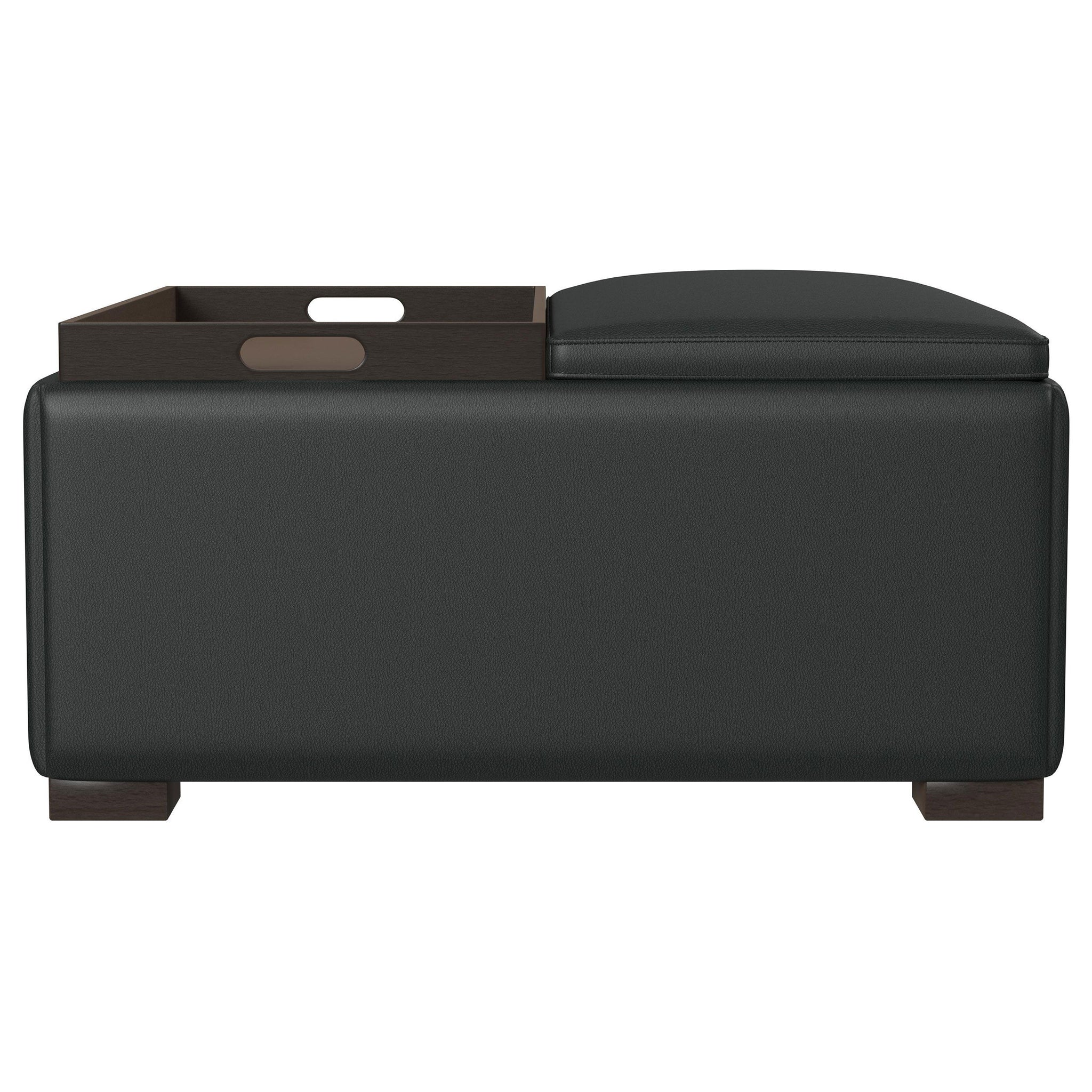Paris - Upholstered Storage Ottoman With Tray - Black35.0"W x 35.0"D x 17.75"H - 63.02 lb