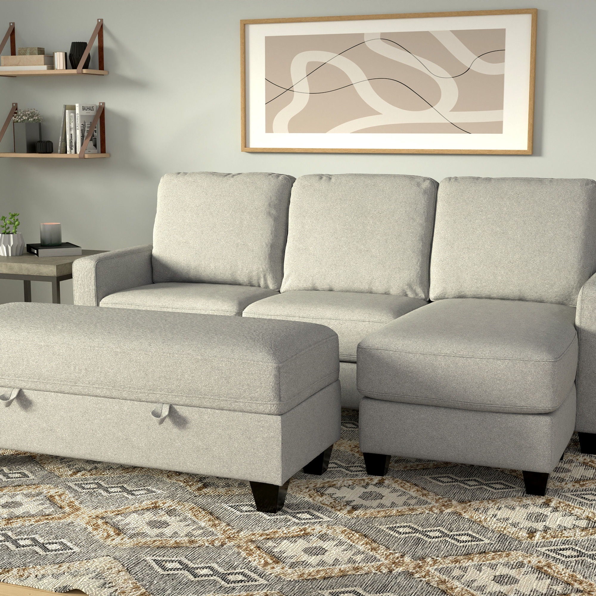 Product Features- The Dawson reconfigurable chaise sectional masquerades as a straightforward chofa and ottoman, the contemporary Dawson disguises easy comfort. The chaise can switch between the left or right side so you don’t have to commit to a one room layout. Tuck blankets and pillows into the storage ottoman at the ready for curling up cozy. Push it up against the loveseat to instantly create additional leg space while you drop down the center back cushion to reveal two cupholders and USB-A and -C ports just waiting for you to binge watch your new favorite show. Snuggled up in a textured gray fabric, Dawson is the ultimate in casual, effortless style with convenience..