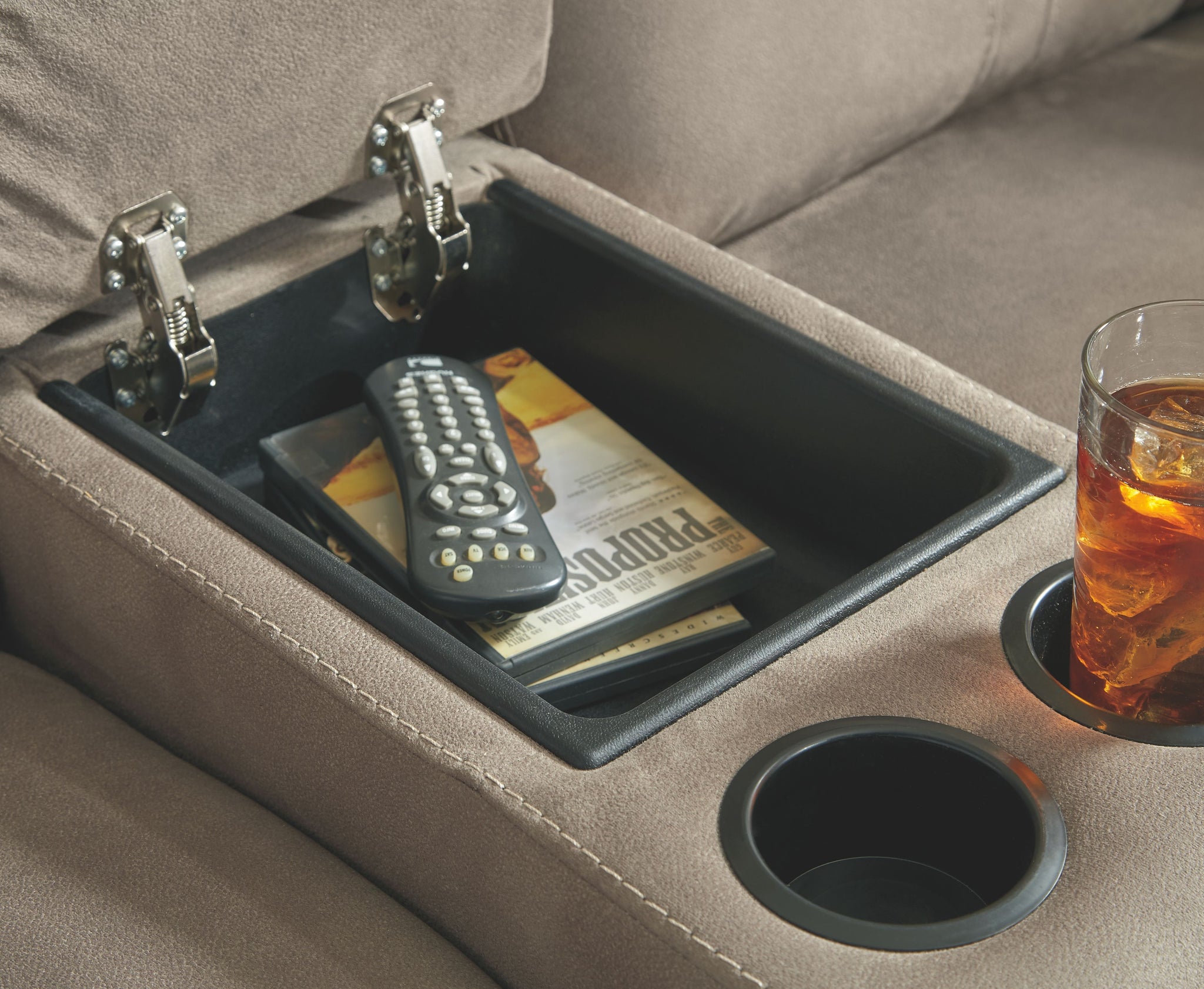 Strike a balance between the indulgent comfort you crave and the cool aesthetic you long for with this reclining loveseat with console. Offering the cool look of weathered leather, the feel-good slate-tone upholstery takes neutral to new heights. Simply chic divided back tailoring and jumbo stitching are among the finer details that make all the difference.