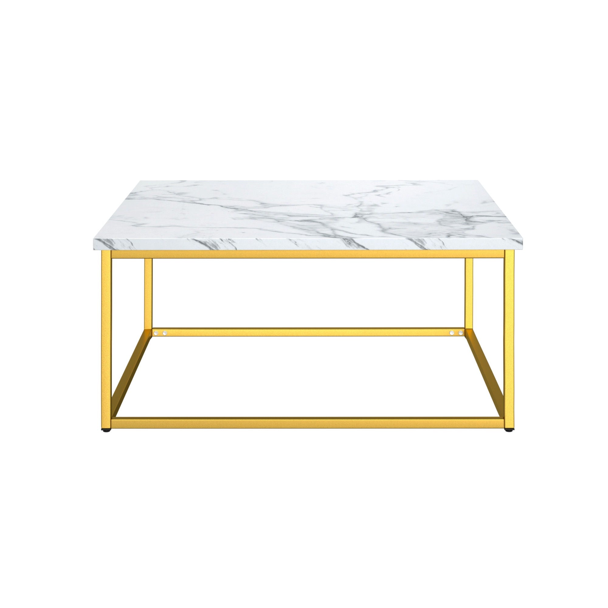The Driscoll occasional collection blends a simple silhouette with timeless surface colors into a transitional item that will work with plenty of styles. The metal legs and base are presented in a shiny gold tone with subtle shimmer that adds an eye-catching element with a hint of glam. Finished in a gray and white marble pattern, the easy-care melamine top puts a classic look on modern materials. You’ll have a spectacular combination of bold and neutral to suit all occasions with the Driscoll.