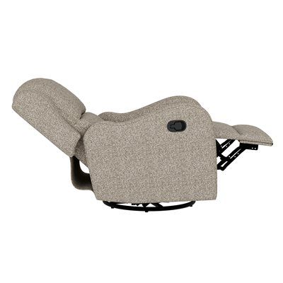 Product Features- The Henry swivel glider recliner brings together graceful curves and everyday comfort with a gently sweeping arm and tailored upholstery that highlight its sculpted silhouette. Available in light brown PU or speckled brown woven fabric, this swivel glider recliner features a sinuous spring seat topped with an individually pocketed coil cushion for supportive, resilient comfort. A padded back and smooth gliding base offer gentle motion, while a sleek black metal lever provides easy access to the manual reclining feature, making it a versatile choice for nurseries, reading corners, or cozy living spaces..
