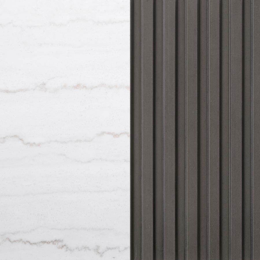 Center your living space with this elegant, modern round coffee table. The genuine white marble top exudes sophistication with its subtle veining, adding organic flair. The clean, light coloration complements any surrounding decor. A ribbed, engineered wood frame in a charcoal finish creates texture and depth, while the brushed gold metal base brings a luxurious touch. This piece seamlessly blends refined materials and design, making it the perfect addition to your living room.