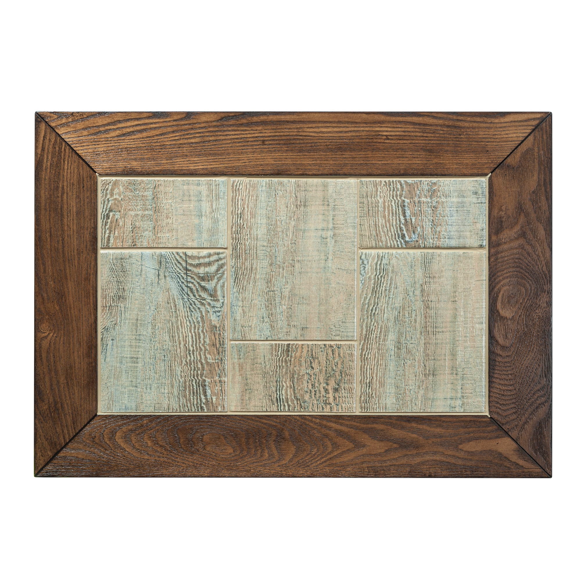 Accent your space with the rustic styling Mesa Valley chair side table. Crafted of poplar solids, oak veneers and ceramic tile tops, this piece features a tobacco finish, rural ceramic tile top, bottom shelf storage, one full extension and fully stained interior drawer accented by custom antiqued brass bar pull hardware, anchored by a tapered leg design. The tobacco finish allows for a universal appeal with essential full extension metal side drawer glides.