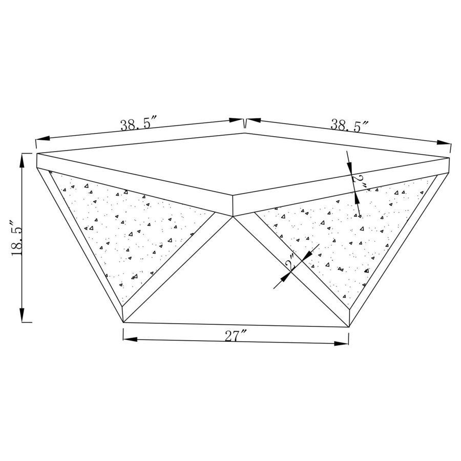 Amplify the style of your living room with this mirrored coffee table. Its bold, diamond-shaped base features triangular mirrored panels with alternating glittery material, adding shimmering sparkle and opulent style. A 40-inch square, reflective surface tops off the design with a touch of glam, making it an exquisite centerpiece for any contemporary home. This coffee table brings a luxurious and artistic flair to modern living spaces.
